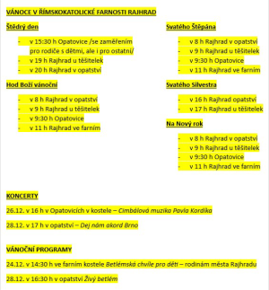 Informace z Římskokatolické farnosti