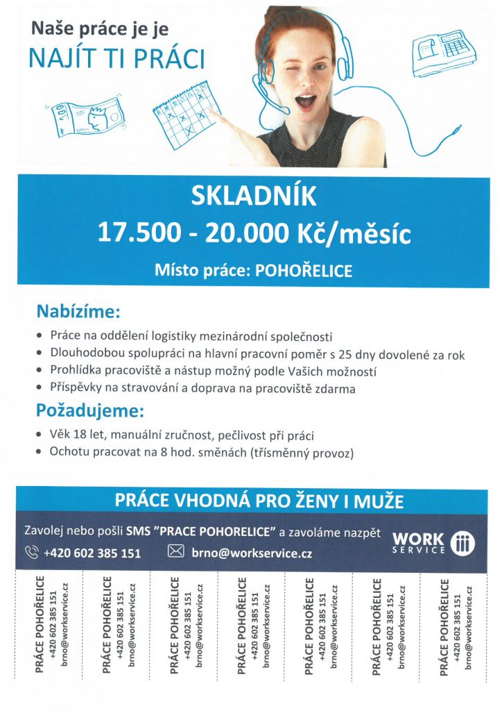 Nabídka zaměstnání- skladník v Pohořelicích.